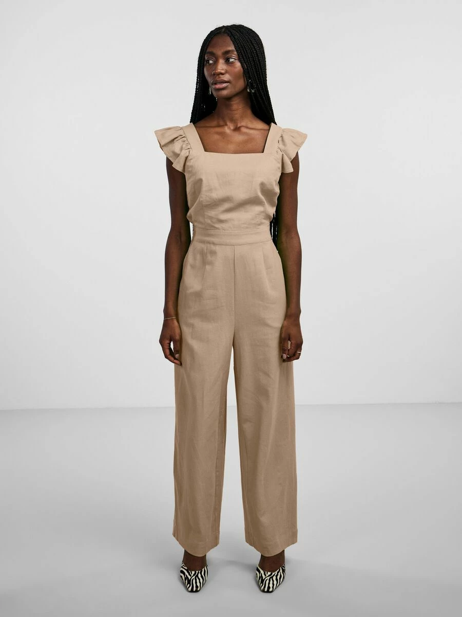 – Effen linnen jumpsuit